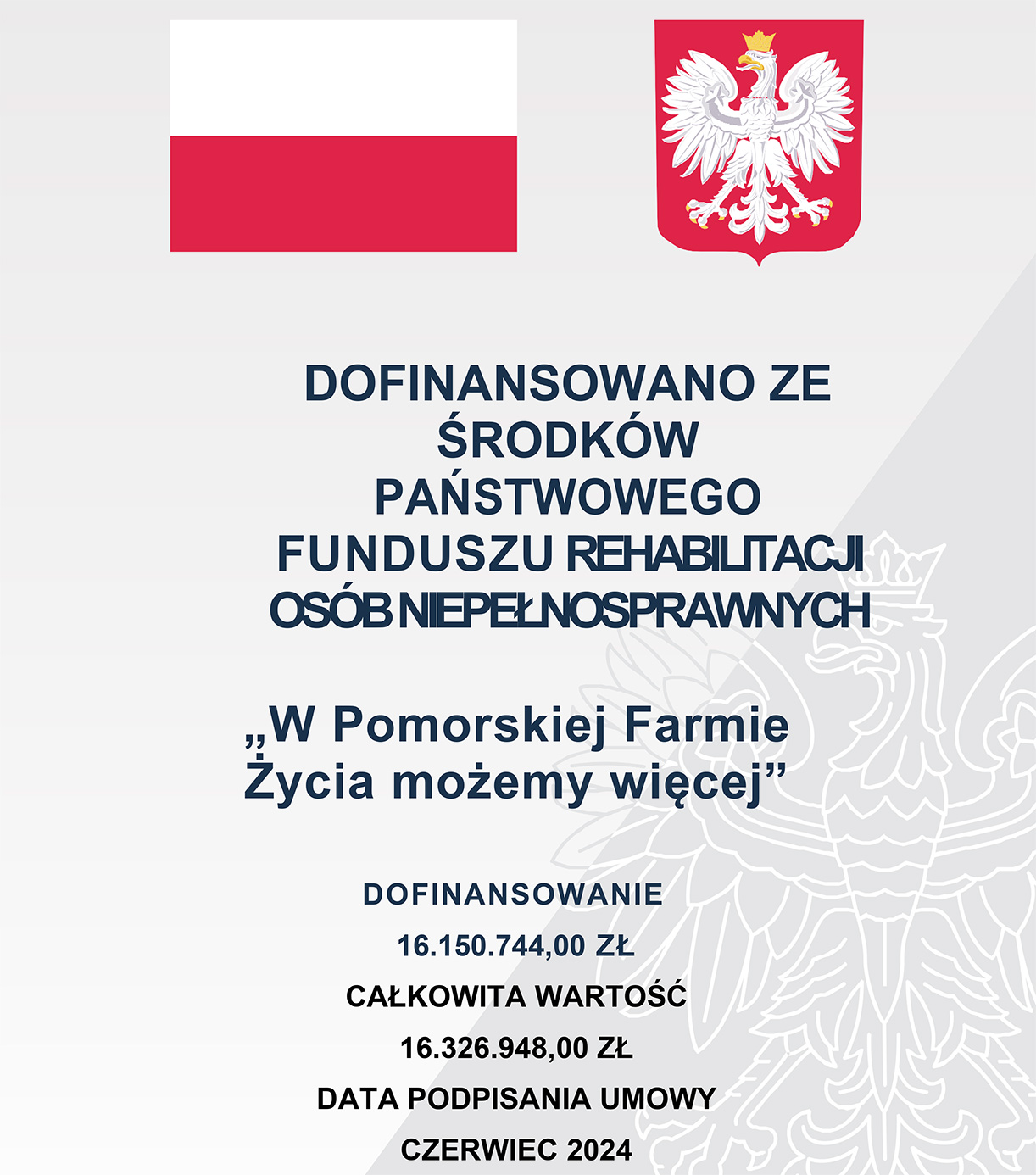 W ramach konkursu z MOPR nasz projekt pn: ”Prowadzenie wsparcia dziennego w formie ciągłej terapii i rehabilitacji społeczno-zawodowej dla 5 osób z autyzmem i pokrewnymi zaburzeniami psychicznymi, całkowicie zależnych z Gdańska w Pomorskiej Farmie Życia”- otrzymał dofinansowanie ze środków PFRON i zapewnił specjalistyczne wsparcie dzienne.