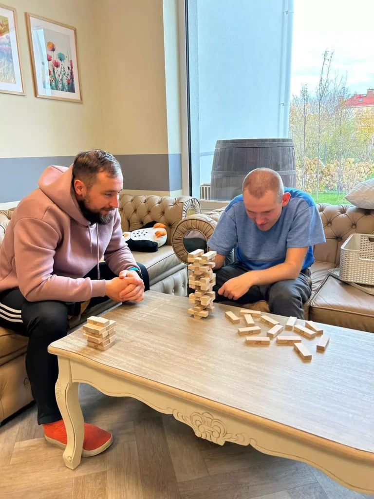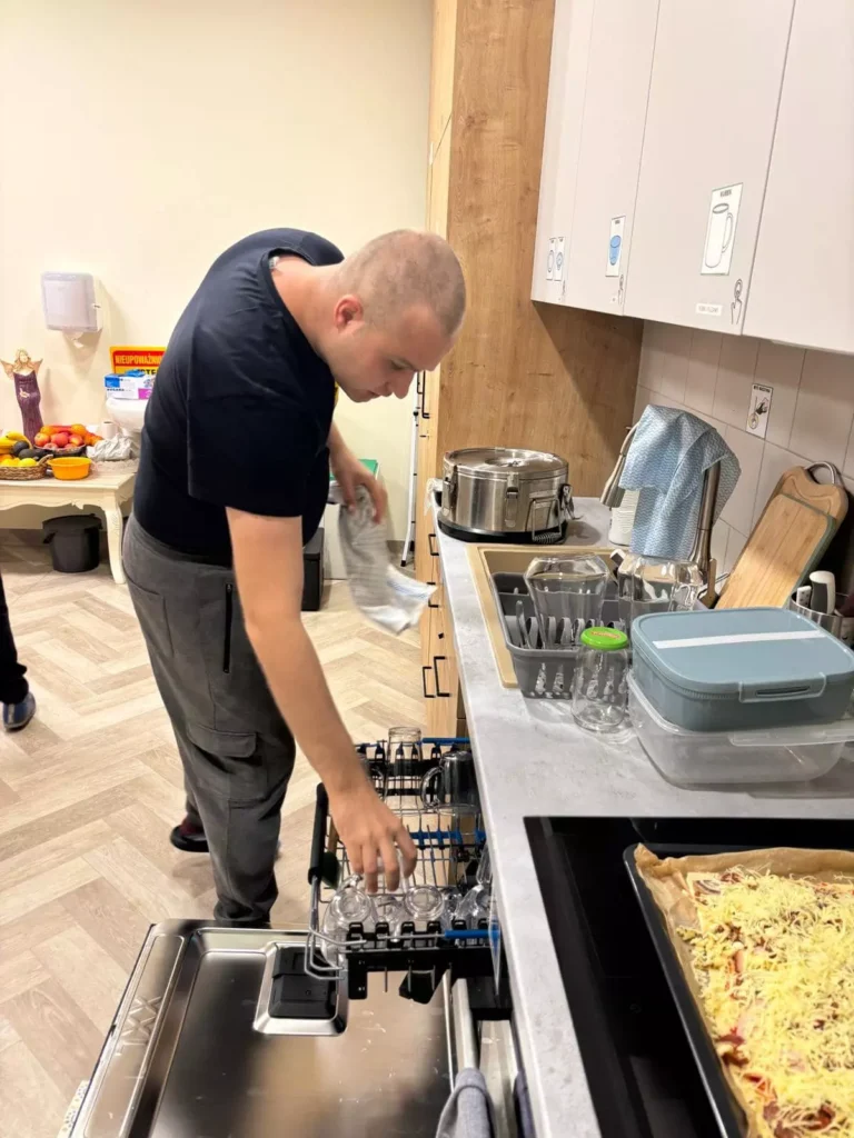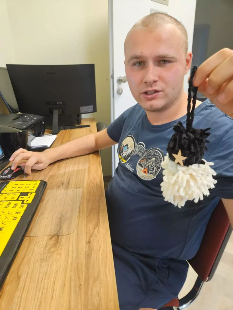 Kuba z pasją tworzył zapachowe mydełka i zdrowe sałatki, a Kalinka z dumą doskonaliła swoje umiejętności porządkowe i kulinarne w kuchni treningowej. Oboje aktywnie uczestniczyli również w ćwiczeniach w sali rehabilitacyjnej — a kadra terapeutyczna miała kolejny powód do dumy.